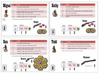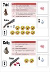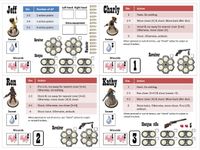 My first focus was on developing a solitary version. The challenge is to design an interesting NPC (non-player character) opponent. Its actions must be easy to execute, unpredictable, adapted to the situation, and unique. I solved this challenge by adding an action table that is different for each NPC character. You roll a die and look at the corresponding action. So, easy and effective.