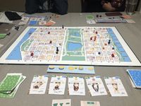Every other round, events toss things up on the streets of New York. If you've ever tried to enter or leave Central Park during the New York Marathon (or any of the other 100+ running events that the New York Road Runners put on in Central Park each year), you know it's no easy feat. There's an event card that makes you take one extra movement to enter or leave the park for the next two rounds!
