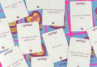 I went ahead and ordered another prototype, updating the colors and changing the apology cards to reflect what players wanted most: 99% terrible apologies, with a handful of kind ones as little surprises.