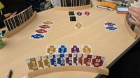 Precision in bidding is obviously the goal of the game, but I thought the bidding system had the potential to add extra spice with the right incentives. Also, there was something slightly unintuitive to the Shut the Books scoring that felt at odds with the buttery smoothness of the gameplay. The Shinzawa scoring system is in the rulebook as a variant for purists, but I think we cooked up something extra juicy for the re-implementation.
