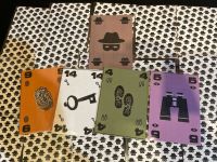 Paul tasked me with trying to make this brilliant game a bit more expressive and accessible. First on the list: a retheme. The theme was a bit vague in Shut the Books. Closing magic books that you recklessly opened is a bit abstract and not terribly immersive. Since the main objective of the game is to cover up the cards in your bid, I felt like planning a heist fit perfectly! The bid represents a plan, and the suits represent types of evidence one would leave behind. If you don't cover up a bid, the evidence is left face up, which means that you left a loose end and weren't careful. You should have covered up those fingerprints! Reverse engineering this game into a theme-forward design helped to clarify all of our remaining development decisions.