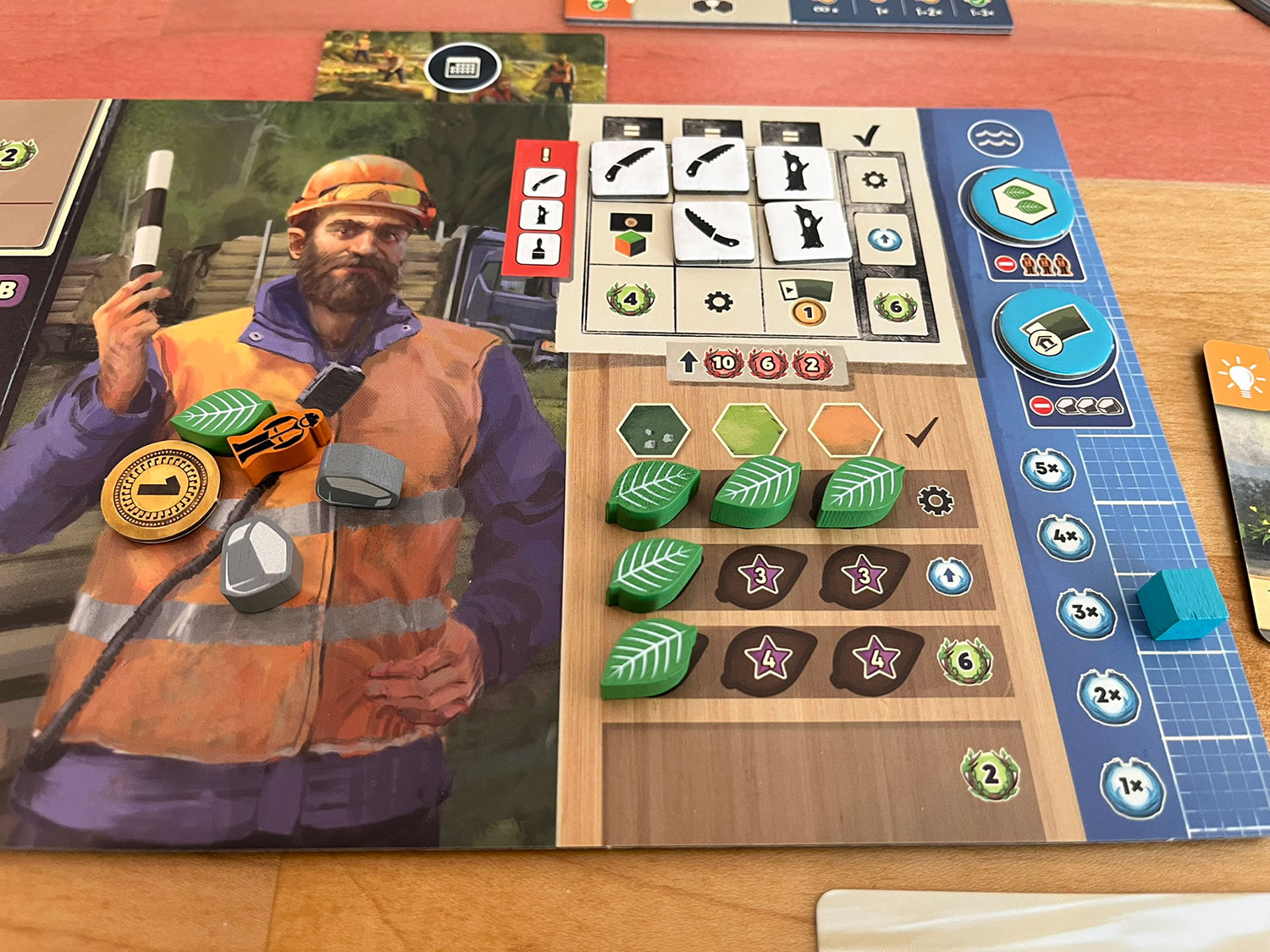 As for player count, Forestry is a mildly player-interactive experience. Occasionally, an opponent will cut down the tree I wanted or claim a contract or token I wanted from the board. More players mostly add more downtime, though it is a thinky enough game with so much forward-planning that it still doesn’t feel too slow at 3-players.