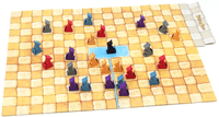 Billabong is the rare perfect-information abstract strategy game that can be more fun with more players. After all, the more players at the table, the more kangaroos you have on the board, which gives you more jumping possibilities — sometimes too many jumping possibilities, at least for some. You can play more casually without thinking too much about future turns, or you can try to plan several moves ahead. The Playte edition is the first to include components for up to five players.