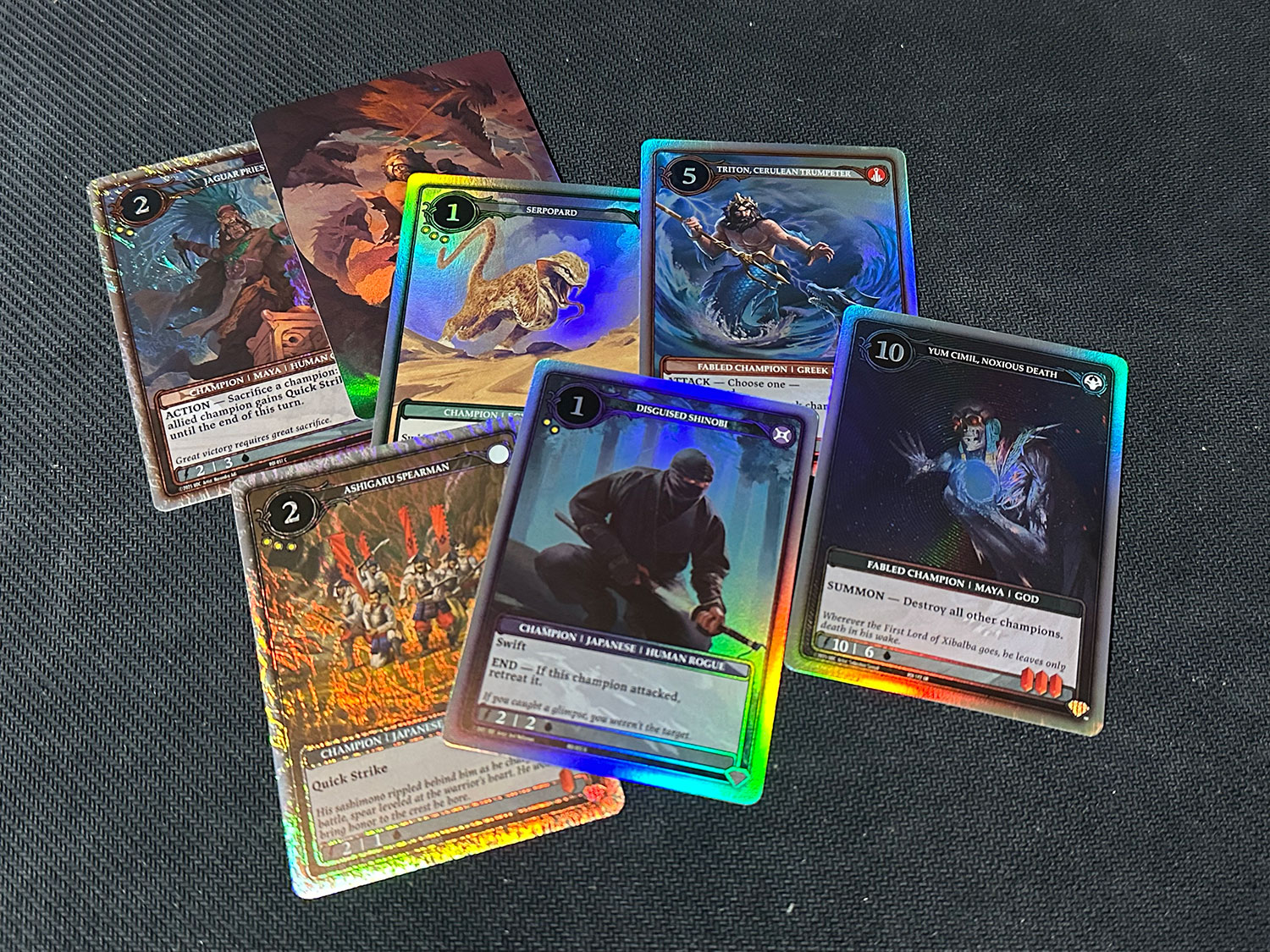 The other big innovation fell flat for me: the transparent Infusion cards. I already discussed their shortcomings, so I won’t go into them too deeply, but I think this is an area where they could improve the game and maybe make it a bit more interesting. As it was, it isn’t really gameplay per se, because you assign your Infusions during deck construction. It seems like it would have been much more interesting to make them something you could add with spells or abilities to Champions that you have already summoned. This would skirt some of the restrictions that made them annoying to read or the requirement to slide them into sleeves in front of cards. That would be more interesting than just “these cards are now better.”