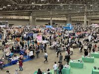 It was cloudy on the first day. The nearby Kaihin Makuhari station is 31 minutes away from Tokyo station by express train to Chiba. Located by the sea, it was windy and the air was cold. At 8:30 a.m., 2 hours and 30 minutes before the doors opened, the line for early entry reached 345 people. The number of people waiting was slightly lower than last time, according to the venue staff. This may have been due to the inconvenient access from the Tokyo metropolitan area compared to Tokyo Big Sight.