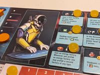 As it turns out, what players REALLY have to worry about is the production level of the game’s three main resources (food, energy, and steel) on both worlds, tracked with three small discs on each player’s personal board. You start the game with a fully-functioning economy, but then you have to break that economy and rebuild it through settlement on the other side of the board…and, fast. All the while, players have to manage an action point system that gets very expensive very fast, as players spend energy from one or both sides of their personal board to get everything done.