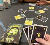 To set up, shuffle cards numbered 0 to 5/6/8/9, along with 1-3 snakes (again, depending on player count), then deal one person three cards and everyone else two cards. Additionally each person holds an open door card in hand.